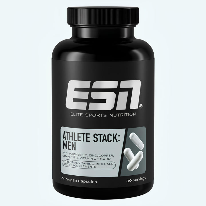 All-in-One-Support – mit unserem Athlete Stack. Diese effektive Nährstoffkombi versorgt dich ideal mit Vitaminen, Mineralien und Spurenelementen. Dabei haben wir die Dosierungen und Inhaltsstoffe an dein Aktivitätslevel und dein Geschlecht angepasst, um dir den besten Support zu bieten.