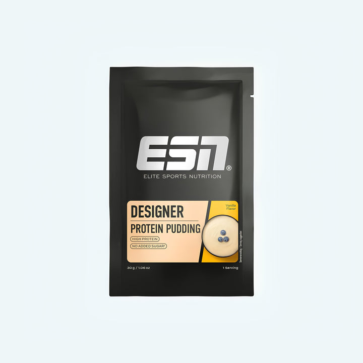 High protein, high taste: mit unserem Designer Protein Pudding! Mit bis zu 18 g Protein pro Portion und ganz ohne den Zusatz von Zucker machst du dir mit unserem Protein Puddingpulver einen cremigen Pudding. Ideal zum Frühstück, als Zwischenmahlzeit sowie als Snack vor oder nach dem Training.